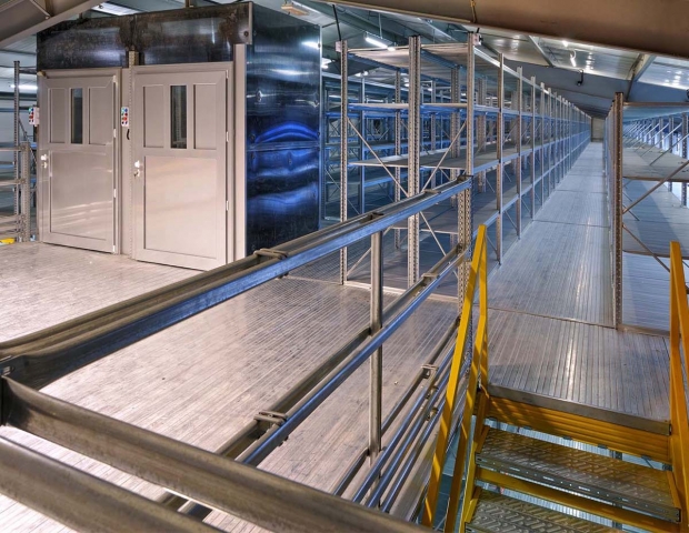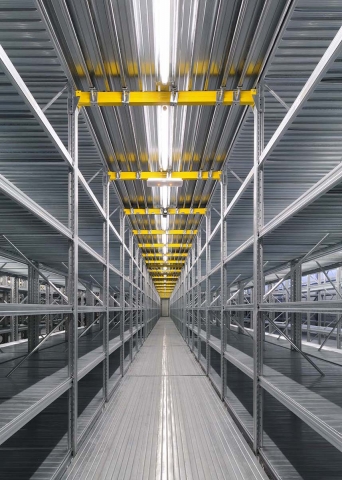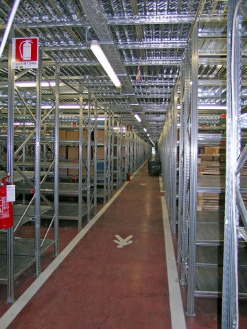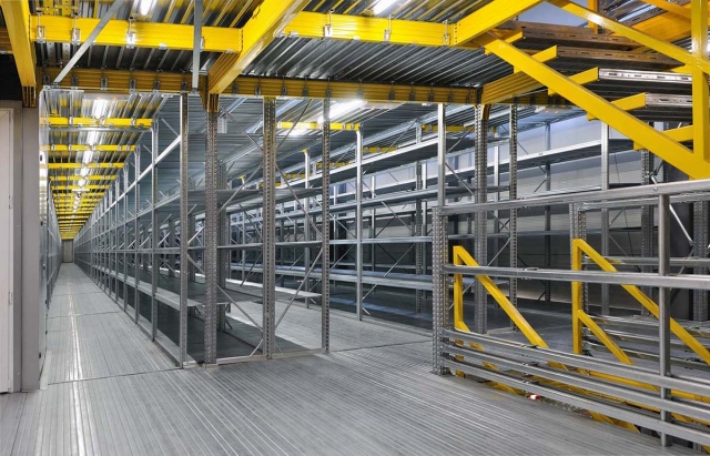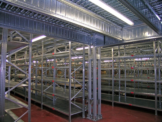Najpovoljniji i cijenom najprihvatljiviji način za povećanje skladišnog kapaciteta već postojećeg objekta je tzv. Etažno skladište ili skladište sa podestom. Instalirane komponete su iz proizvodnog programa Super 1-2-3, Unirack ili Super 4-5-6. Projktiranje zavisi o nosivosti poličnog regala, traženoj nosivosti poda i raspona, položaja stubišta i ograde, visine regala i broja poličnih nivoa kao i visine do poda (ukoliko se radi o skadištu sa jednim podom). Naravno da je izvedivo i multi etažno skladište. Podni paneli koji sadrže nominalnu nosivost kroz strukturna ojačanja i debljinu samog lima su moguća u tri oblika: ravni, perforirani i rebrasti.