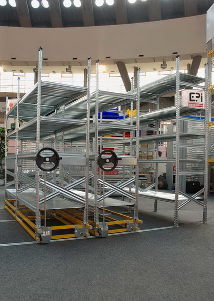 Postavljanjem regala na staze (visine 12mm), i uz pomoć mehanizma koji omogućava mobilnost sustav MOBIBASIC osigurava veliku uštedu prostora. Instalacija je od regala Super 1-2-3 i Unirack, koji postavljeni na pokretni sustav trebaju samo jedan ili nekoliko kanala (ako se želi još brže prilaziti poličnim redovima). Sav ostali prostor je rezerviran u tlocrtu samo za police, tj. koristan prostor za skladištenje bez komunikacijskih kanala. Ovaj tip skladištenja je pronašao svoju primjenu u arhivama, bibliotekama, skladištima rezervnih dijelova i sl.